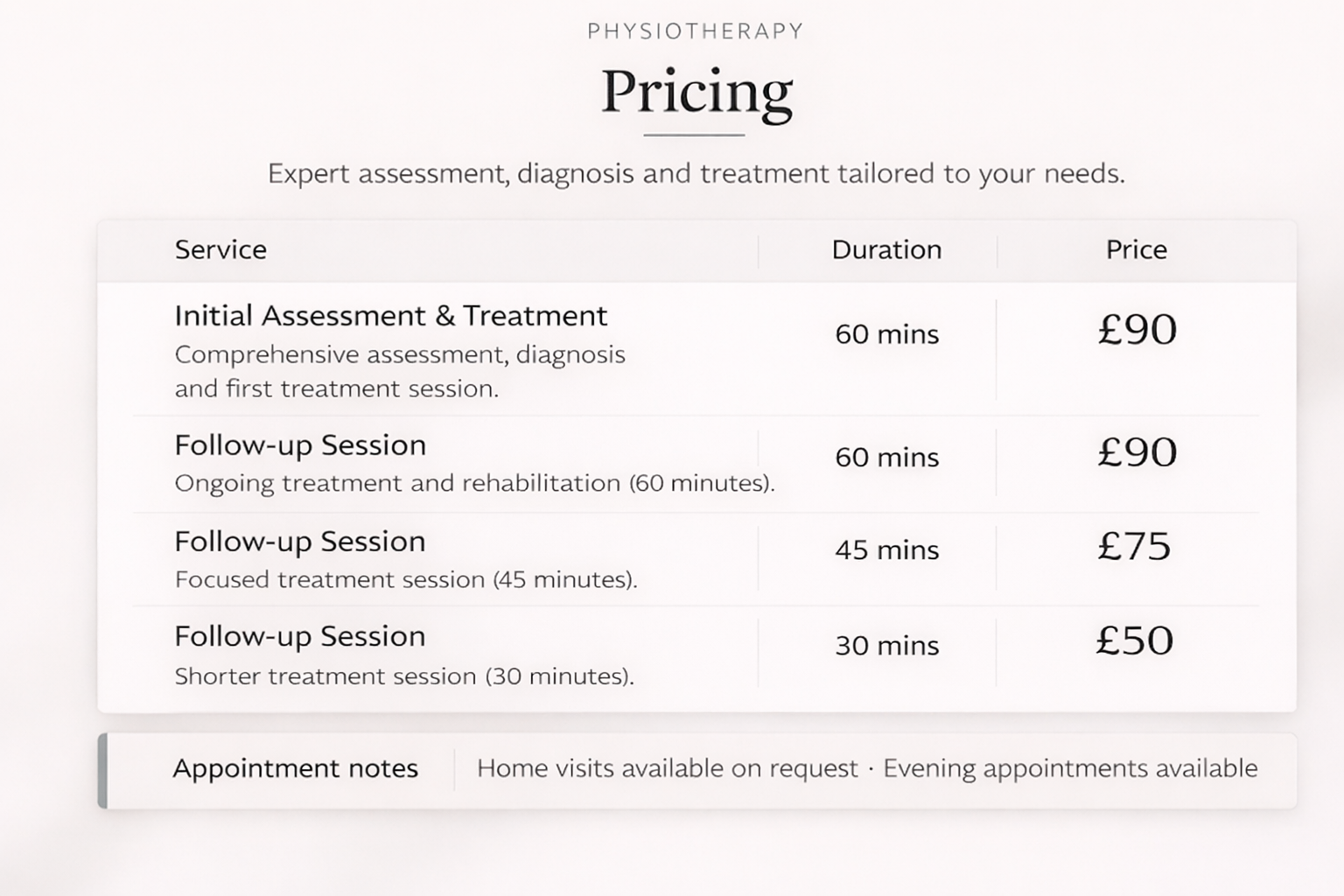£90 (in-home visit £120) -